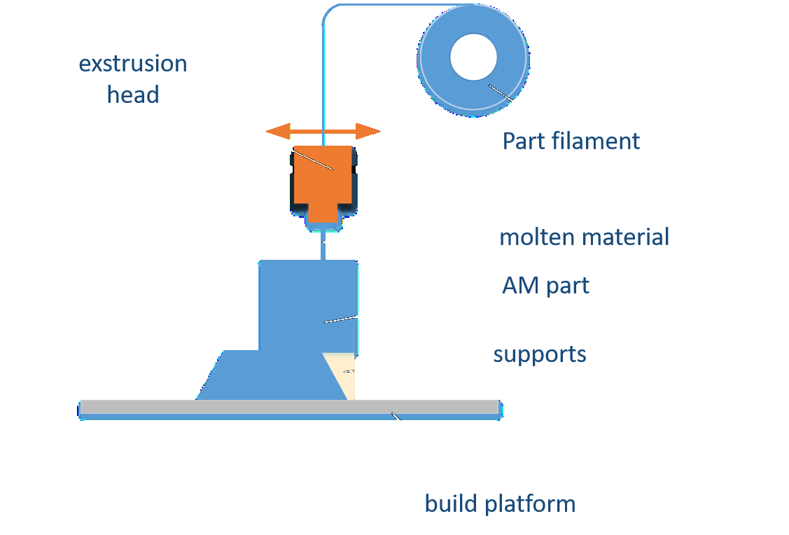 Material extrusion (ME) – AM process in which material is selectively dispensed through a nozzle or orifice