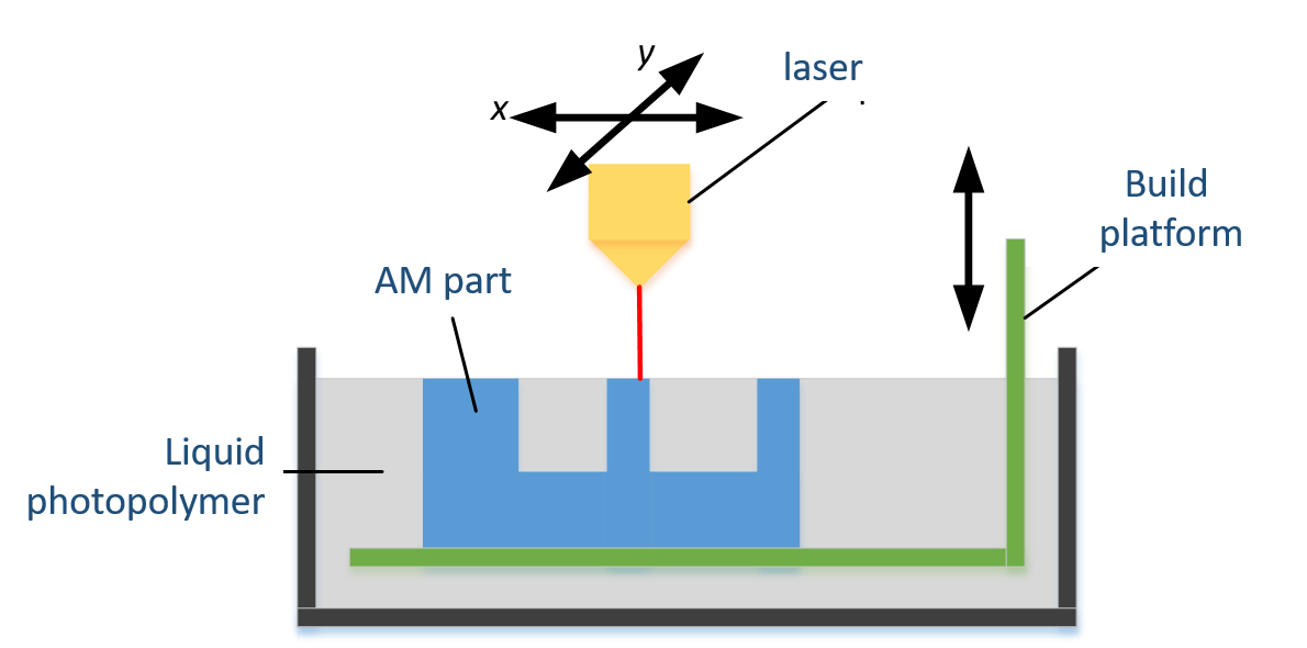 Vat photopolymerization (VATP) - AM process in which liquid photopolymer in a vat is selectively cured by light-activated polymerization