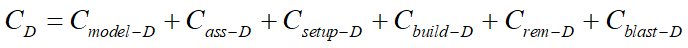 As explained, the direct production costs may be expressed as a sum of direct costs of all activities (index model stands for modelling, ass for assembly, setup for setup, build for building, rem for removal and blast for blasting activity).