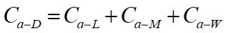 For each of the activities (denoted by a), the the direct cost may be expressed as a sum of labour costs (index L), material costs (index M), and energy costs (index W) as