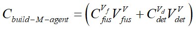 The manufacturer of the MJF equipment declares that the consumption of both fusion and detailing agents is proportional to the volume of the products. Therefore, the material costs of the agents (Cbuild-M-agent) may be calculated using the agent consumptions per unit volume of products (VVfus and VVdet) and the unit costs per volume of the agent (CVfus and CVdet) for the fusion and the detailing agents: